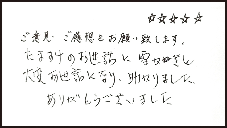 ◆ 掃除・草むしり・雪かき・食事・買物・ペットのお世話・墓参り代行の中で時間内で複数お選び頂く事が出来ます。