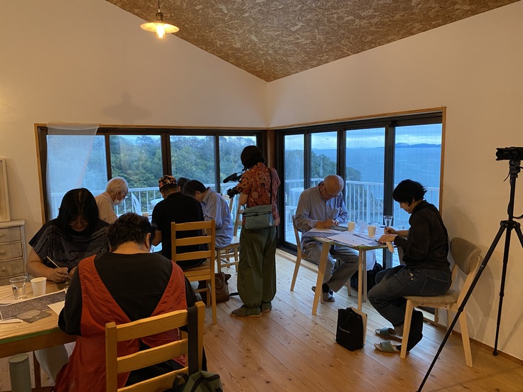 海を一望する赤穂サンクチュアリで、みんな一心不乱にワルリ画の世界へ。