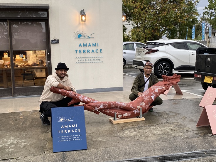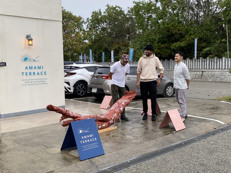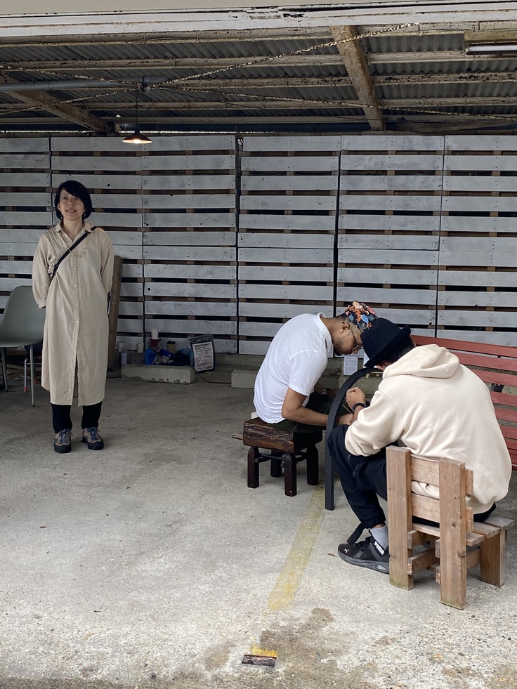 滞在期間中、制作だけでなく御崎・坂越散策や佐用町訪問、ワークショップ開催などイベントも目白押し。その間を縫って夜中まで制作を続けてくれましたが、ベンチはまだ完成せず。