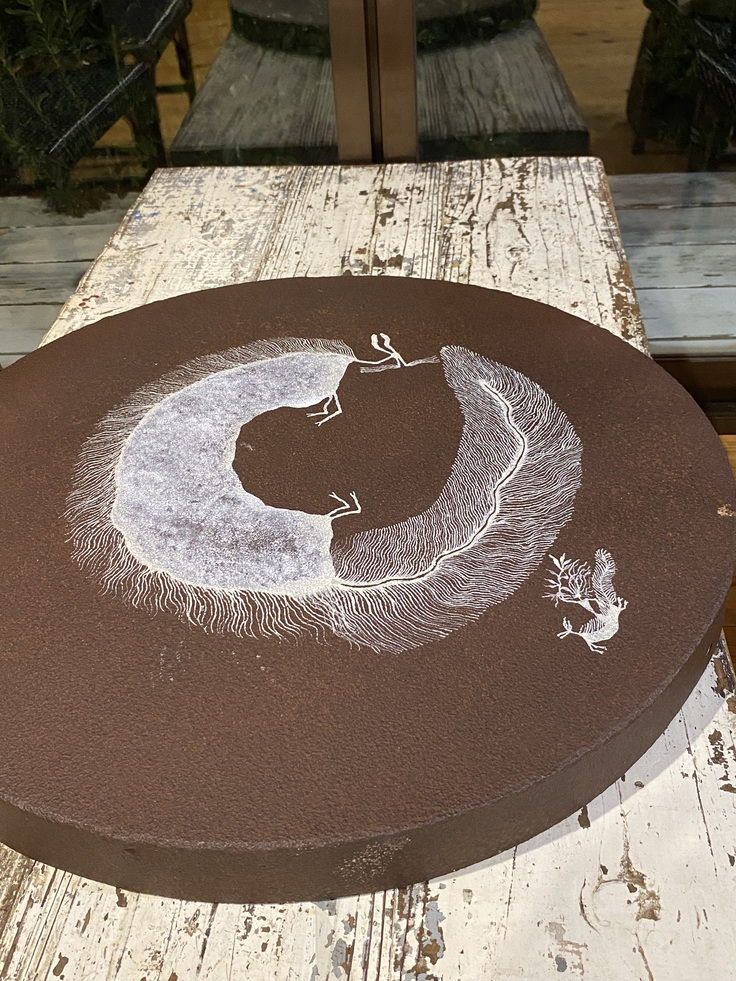 最後に完成した、古いドラム缶の鉄蓋。