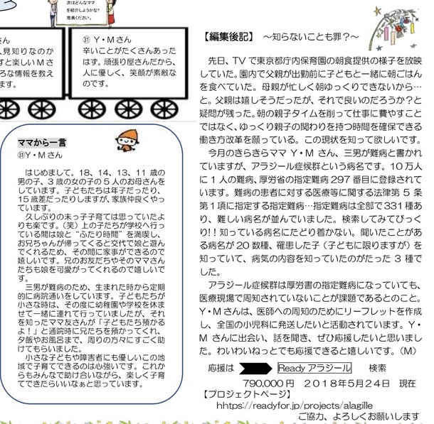 *いただいた支援を、アラジール症候群認知のために大切にしようさせていただきます。