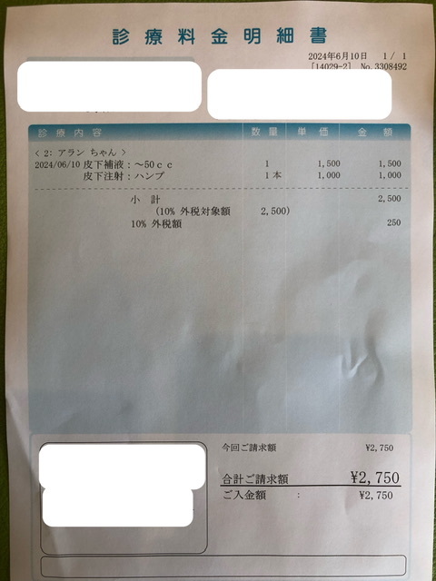 病院では注射に吐き気止めもいれてもらい、点滴をし、無事に家に辿り着きました。
