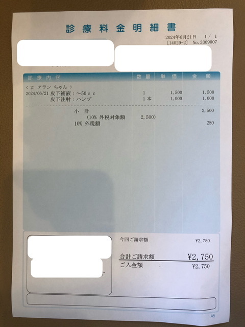 アランは数日前の朝、咳をしていたので心配でしたが、今のところ大きな体調の変化もなく、体重も減っておらずでしたので、このまま引き続き慎重に様子を見ていきます。