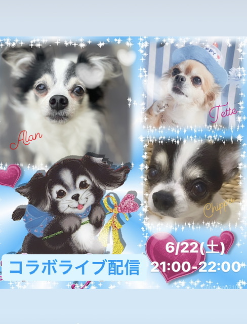 アランと、アラン以外にも同じ僧帽弁閉鎖不全症と闘うチワワちゃん達が集まってのライブ配信です。頑張るわんちゃん達の姿をリアルタイムで、また飼い主さんの思いを皆さん聞いていただきたいです。