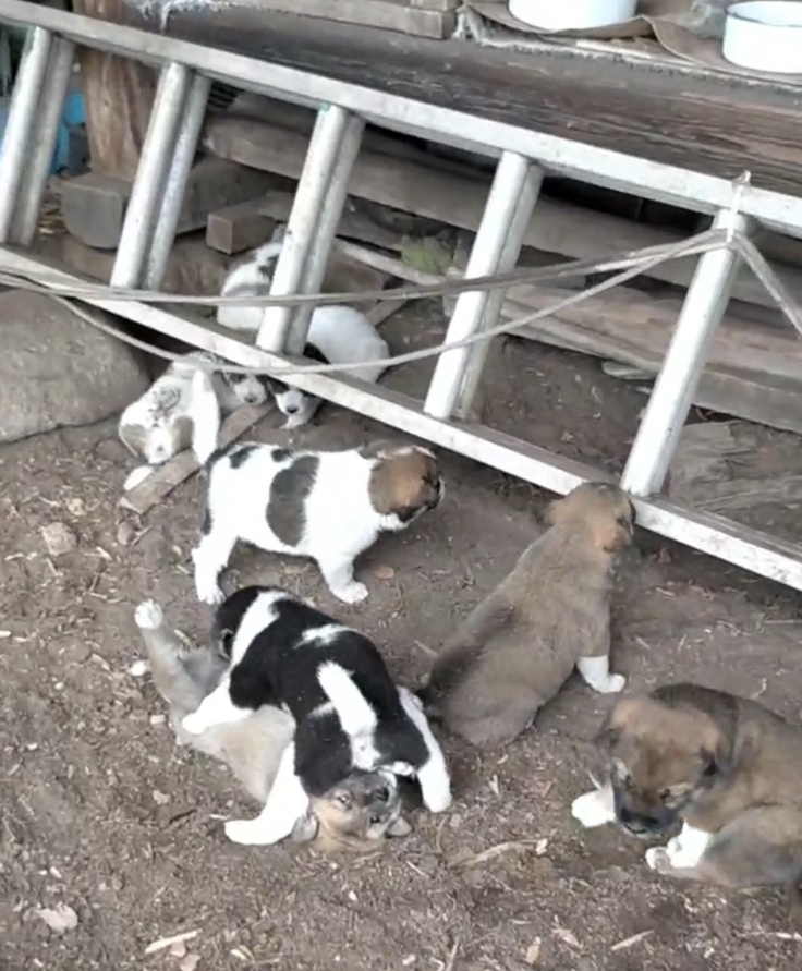 仔犬数匹と一緒に、物置小屋にしていた牛舎にいました。