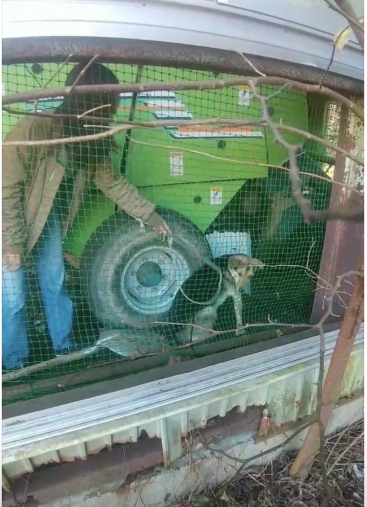 はじめに牛舎周りに捕獲のためのゴルフ用ネットを張り巡らしました。下からも出られないように鉄骨を利用したり、隙間から出ないように全て太い結束バンドで止めるなど大掛かりな仕掛けです。