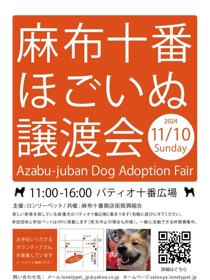 11/10(日) 麻布十番🐶譲渡会に参加させていただきます!
