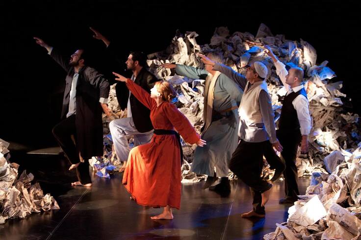 無数の新聞紙の山から俳優たちが現れ、パレスチナの日常を語る痛烈なユーモアと悲哀に満ちた劇を覚えている方もいらっしゃるのではないかと思います。(2011年には同作品で、川崎市アートセンター アルテリオ小劇場と京都芸術センター講堂にて再来日公演を果たしています。)