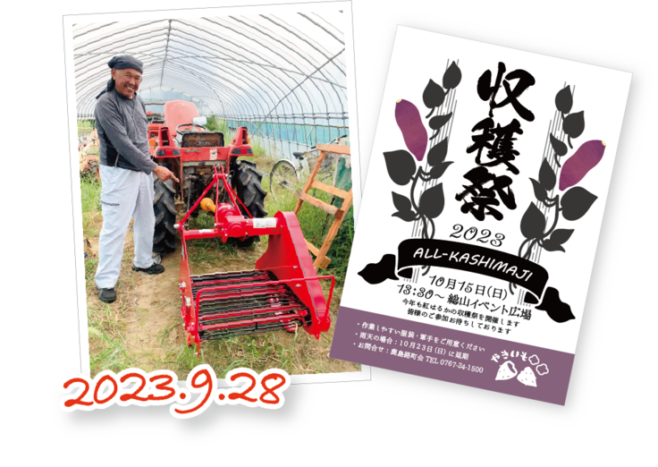 さつまいも掘り取り機が鹿島路町に到着しました👏