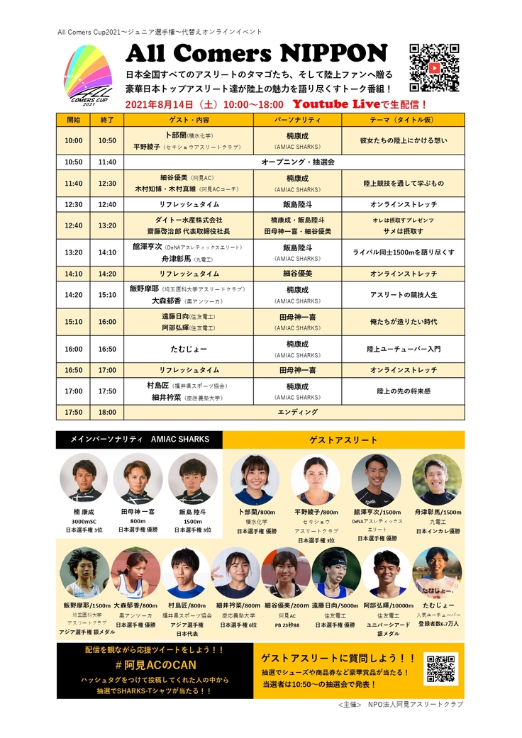 本大会「All Comers Cup2021~ジュニア選手権~」のプロジェクトにご賛同頂き、ご支援を頂いた皆様には改めて感謝申し上げます。