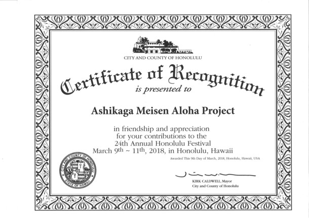 ハワイ州知事・ホノルル市長より感謝状!