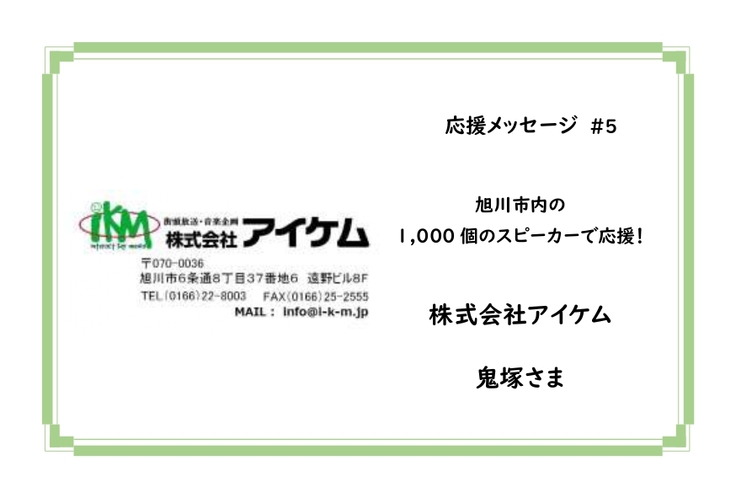 【応援メッセージ】#5 株式会社アイケム 鬼塚さま