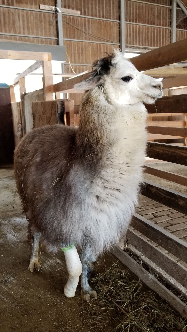 3月、パルさんに不運が…。朝畜舎へ行ってみるとパルさんが前足をあげていました。