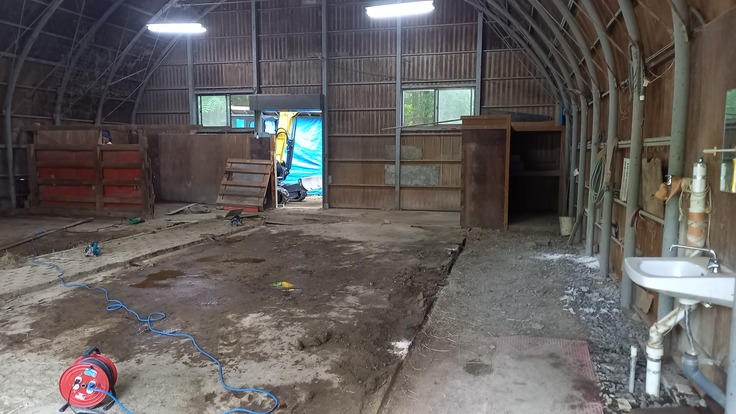 本当は16日の営業終了後からアルパカたちを外に出して慣れてもらう予定でしたが、生憎の雨。さすがに最初っから雨…っていうのも萎えるので、最後に「デコボコな床の畜舎」で過ごしてもらいました。