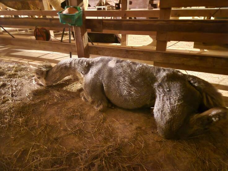 床がコンクリートになってから、きっと涼しいのでしょうね。メスパカさんは営業中でもすぐに畜舎へ帰って休んでしまいます。良かった良かった!