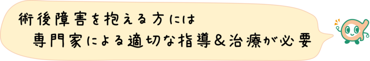また、アンケート回答者の約半数の方が術後の対策について充分理解できていない状況であることがわかりました。さらに、術後障害の症状が個々人によって異なることも相まって、患者さんが自分自身の症状に合った予防や対策を考えることが難しい状況です。
