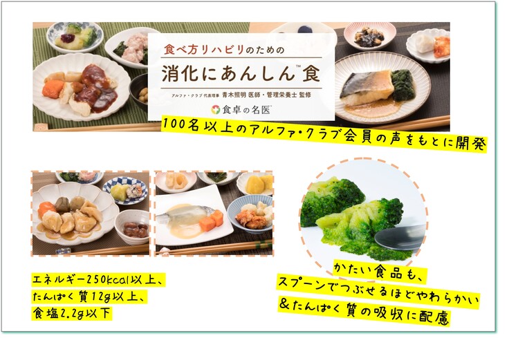 そこで、12月、食品会社と企画・開発し、胃切除後の患者さんや術後障害を抱える方に向けて、「食べ方リハビリ」のための食事を提案しました。