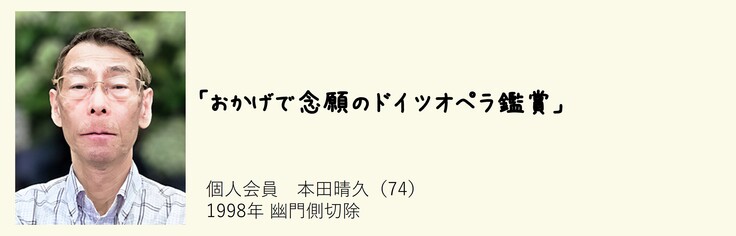 そんな折、『ALPHA CLUB』で吉田昌先生の下痢対策の解説記事があり、「コレバイン」という薬が良いとのこと。この薬は私に合い、下痢の回数が激減しました。おかげで念願のドイツオペラに行くことができました。