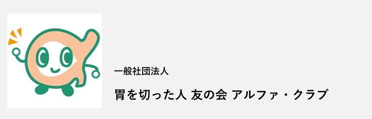 胃を切った人 友の会 アルファ・クラブは、胃切除後の後遺症と向き合い闘っている方々の友の会(患者会)です。「患者同志の助け合い」、「医師と患者の話し合い」を合言葉に、胃を切った人が自らの努力と工夫で術後の後遺症を克服していくことを支援しています。 現在は、会員に向けて隔月に1回会報誌『ALPHA CLUB』を送付しているほか、「胃を切った人 相談室」ではアルファ・クラブに所属するメディカルアドバイザーへ気軽に質問ができる体制を整えています。