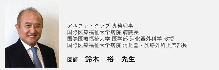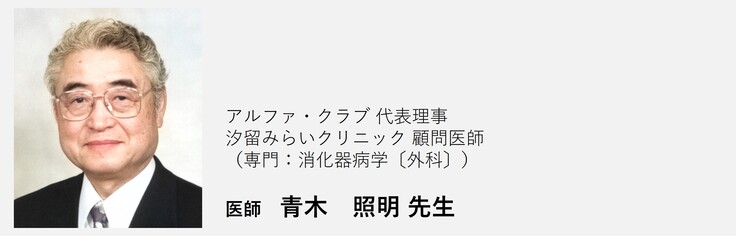 サイト情報の正確性等発信の質を担保するために、アルファクラブ代表理事の青木照明医師(消化器外科)が監修し、情報を公開してまいります。
