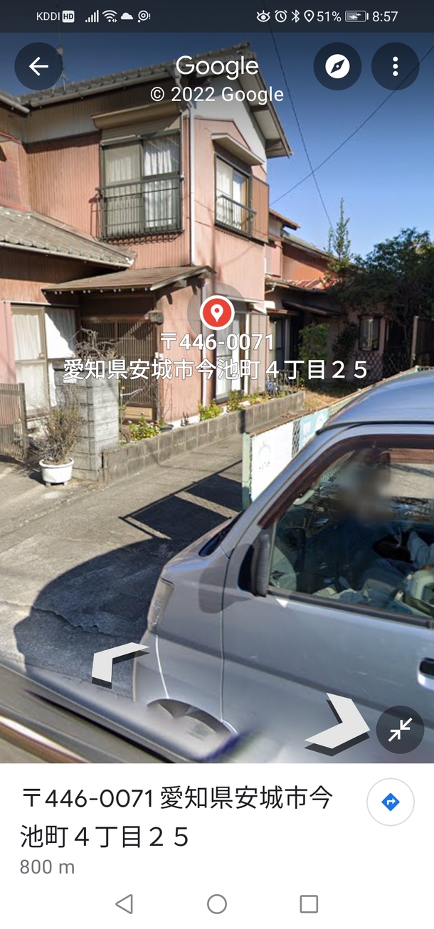 Googleマップでみえている奥側になります。手前の茶色のお宅は違います。