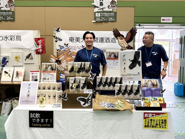 弊社ブースでは、黒糖焼酎「AMAMI SASHIBA」「AMAMI RABBIT」を試飲販売。