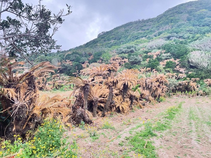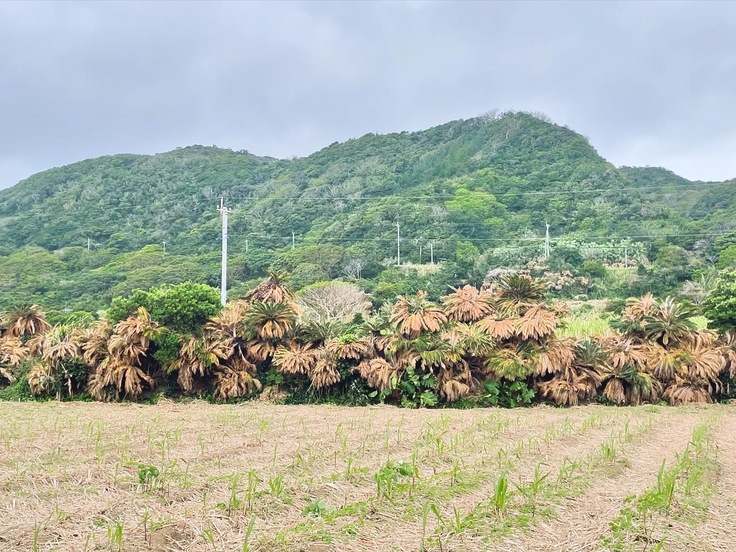 この時期、境界、防風防潮で植えられたソテツもよく見え、被害の様子がわかるとともにこんなに立派なソテツ並木!!!と驚きます。