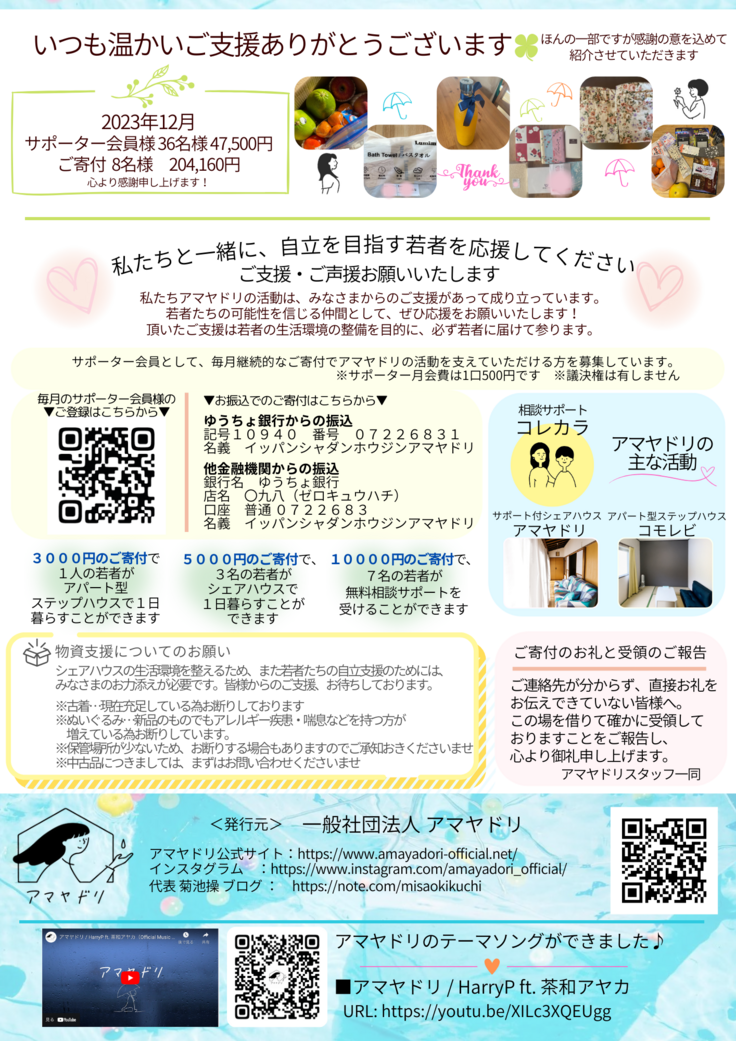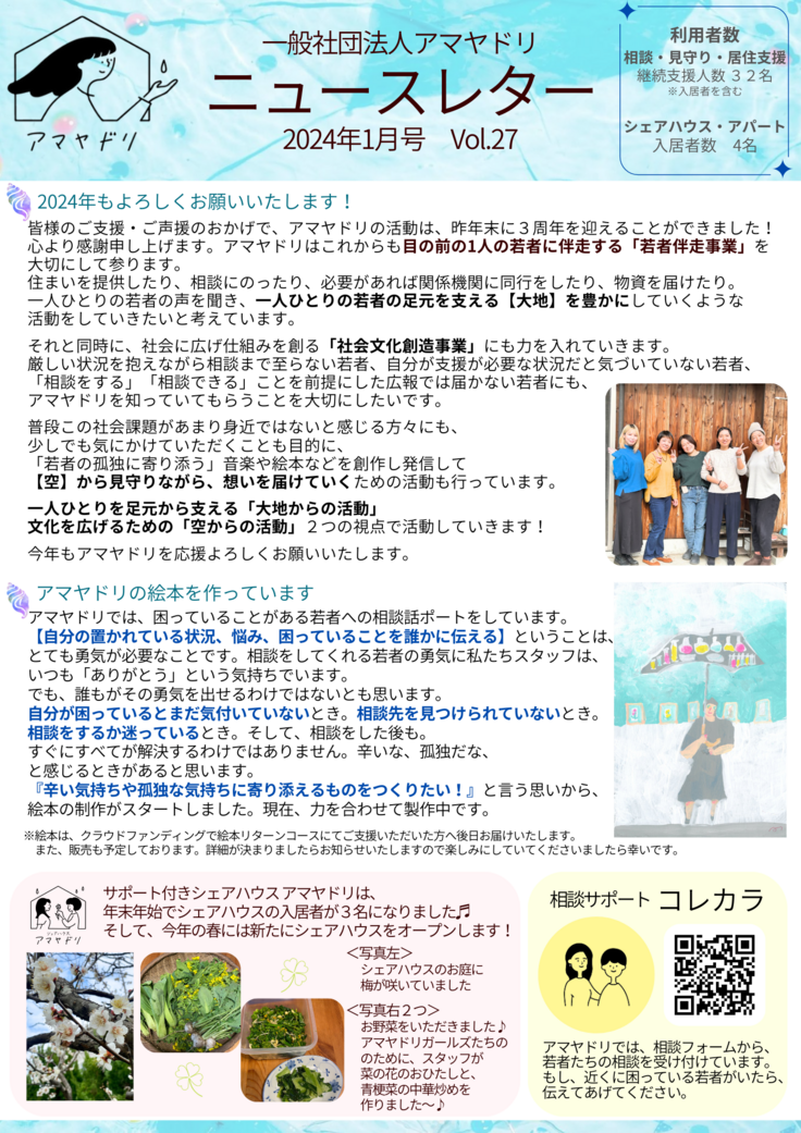アマヤドリのニュースレター2024年1月号を発行しました!