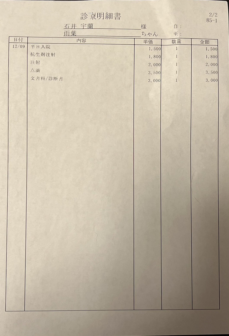 ※ご支援金は雨葉の手術&治療代として大切に使わせていただきます。