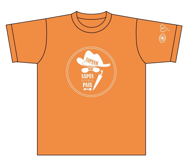 袖には、サプールの平和を愛する精神を「I LOVE PIECE」と一言にし、シンプルな線画でアレンジしたもの。