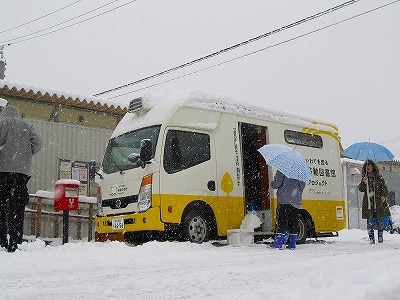 この車は、図書室のある陸前高田市とお隣の大船渡市を巡回しています。