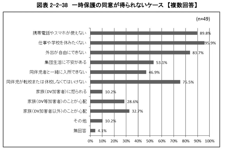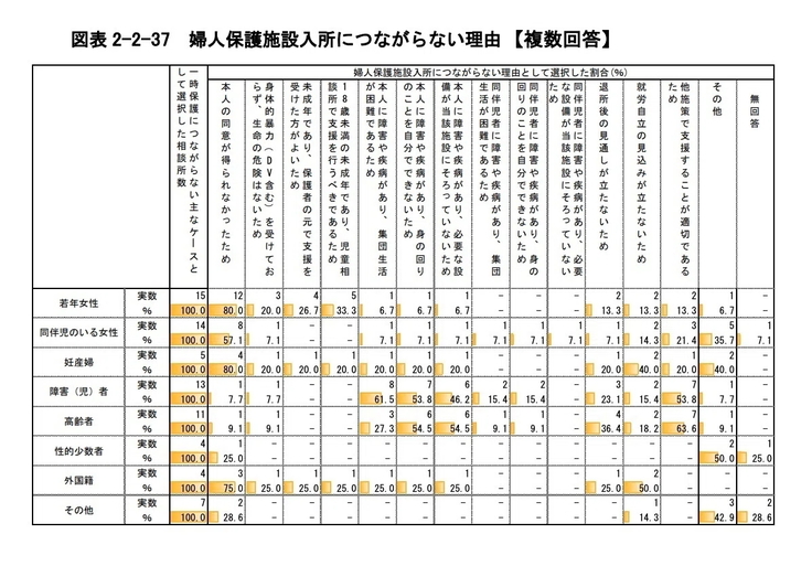 このような厳しい制約から、本人の同意が得られず一時保護につながらないケースがあることは、厚生労働省の調査(「婦人保護事業等における支援実態等に関する調査研究」)でも明らかになっています。
