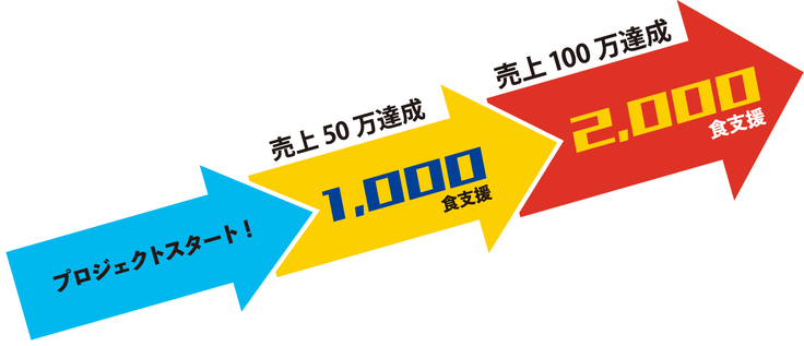 さらに売上100万円まで到達できれば2,000食を支援することができます。