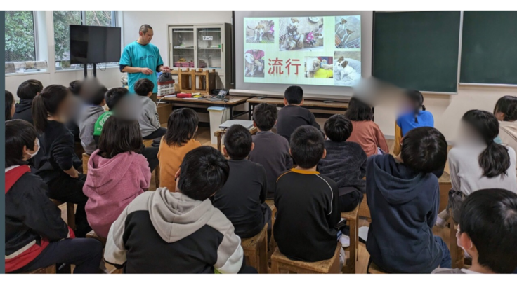 学校で、「楽しく真剣に」をモットーに動物福祉を伝える無料出張授業を行っています。