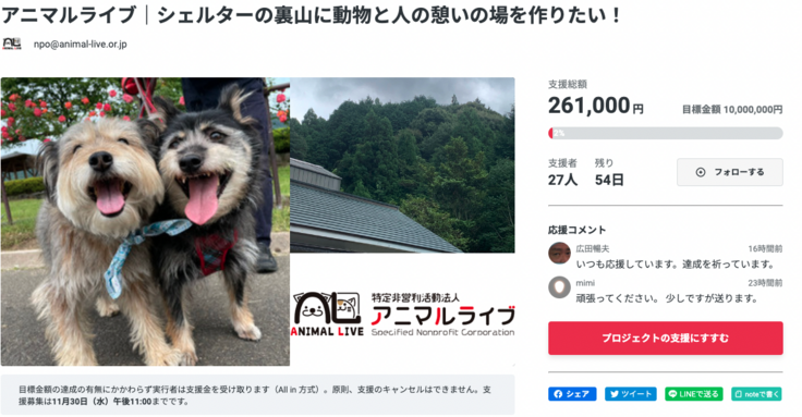 10月3日よりアニマルライブのクラウドファンディング第2弾を実施しております!