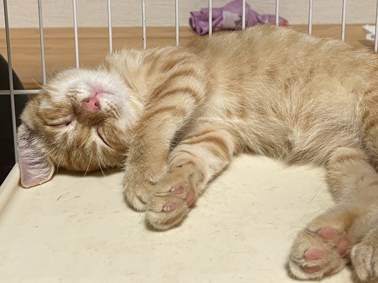 しかし、シェルターでは子猫のケアが難しく、またボランティアさんの家には白血病の猫がいるため、古井さんが代わりにケアを引き受けてくださいました。このように、私たちは目の前の命を救うため、全員が力を尽くして対応しています。