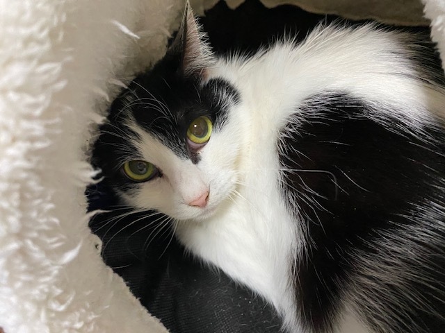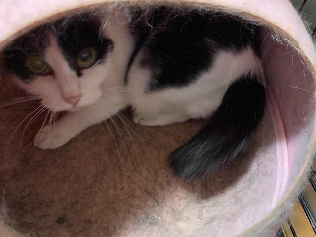 風花も多頭飼育崩壊からの保護猫です。 仲の良かった猫は譲渡されましたが、シェルターでは他の猫と折り合いがつかず、風花は部屋を移っても他の猫にいじめられていました。部屋を区切り相性で分けても状況は変わらず、次第に風花はキャットタワーの箱に引きこもるようになり、外に出るのも嫌がるようになりました。人が側にいるとゴロゴロとのどを鳴らし、甘えん坊な一面を見せるものの、環境が安定せず困っていました。