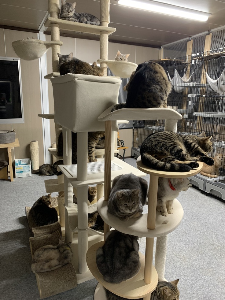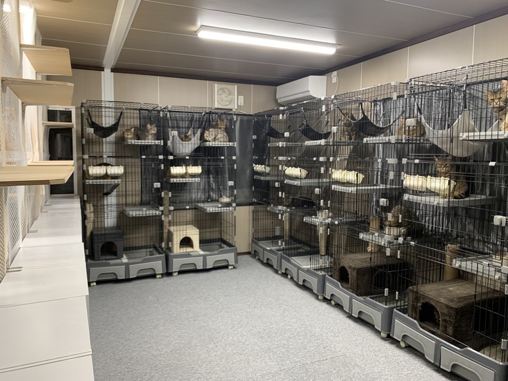 皆様方のご支援でシェルター収容の猫たちの生活スペースは、画像のように素晴らしい空間となりました。そして、カフェの駐車場問題も解決され、今では多くの皆様にご利用いただける施設となり、この施設の在り方や活動への認知度が日々浸透している手ごたえを感じております。