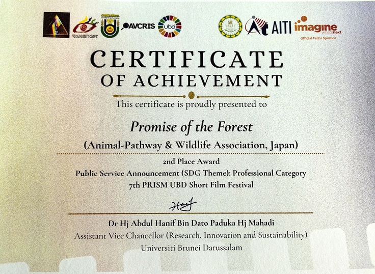 ①🌳🐿森と生物多様性保護の重要性を描いた「約束の森」がブルネイ・ダルサラーム大学主催のPRISM UBD Film Festival 2024で第2位を受賞!✨"Promise of the Forest" won 2nd place, highlighting forest conservation and biodiversity!