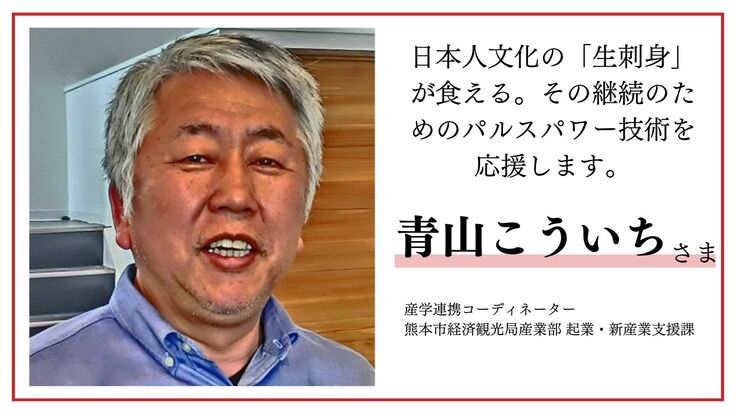 「生食」できない課題を、パルスパワーで解決できる、全面的に応援いたします。