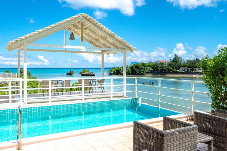 専用プール付き、ビーチまで0分の沖縄でもなかなかないロケーションです。