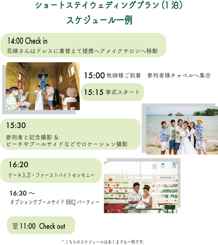 宿泊1泊と上記のウェディングプランがセットになっています。
