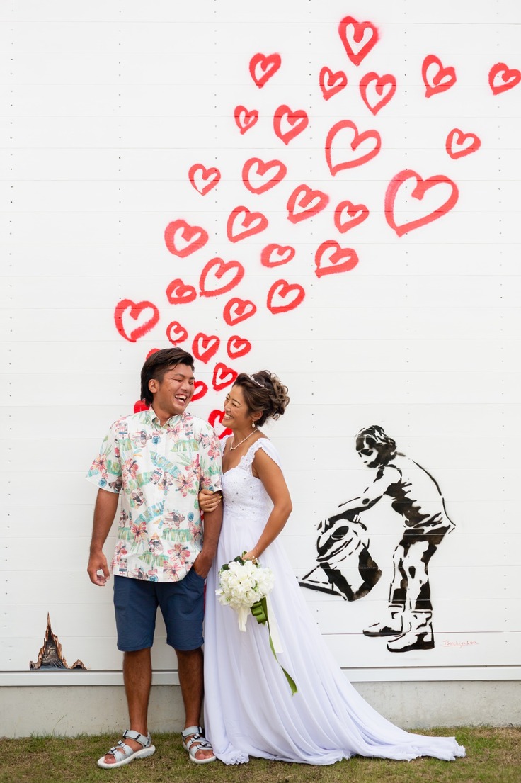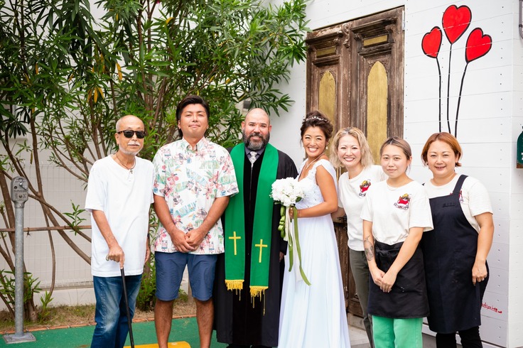 結婚式を挙げたカップルとの記念撮影の一枚。