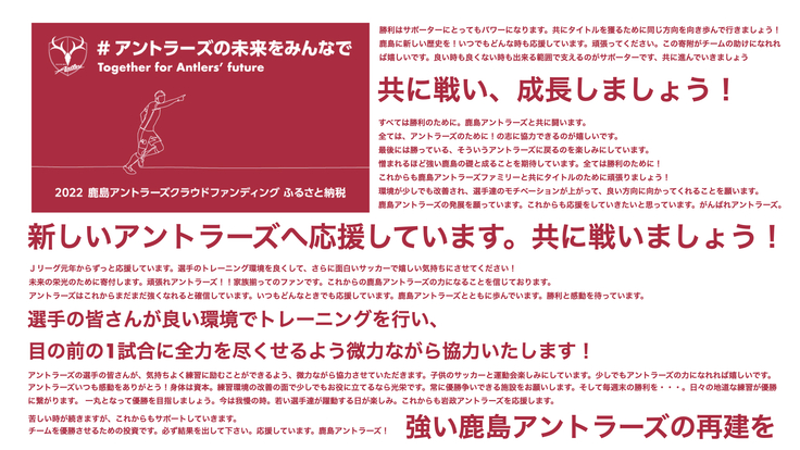 また今回のクラウドファンディング「アントラーズの未来をみんなで 2022」にもご協力いただき、ありがとうございます。