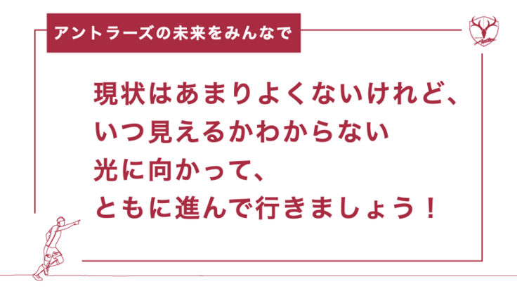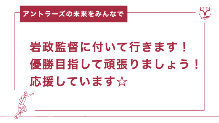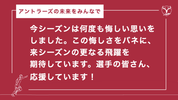 本当にありがとうございます。これからの強いアントラーズに向けて、もっともっと思考し、工夫し、努力していきます。