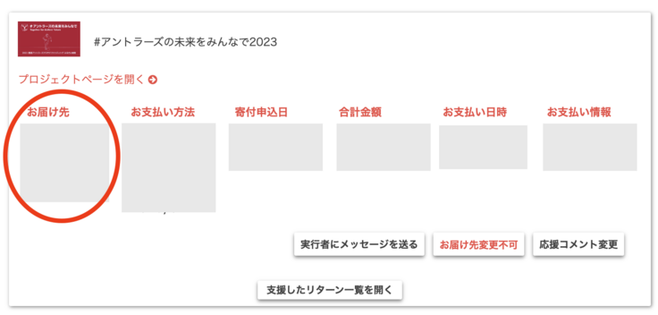 お問合せフォームからご連絡いただいた内容に対して、鹿島アントラーズクラウドファンディング事務局からのご返信メールが届いております。確認のため、メール内に変更後のご住所としてご連絡いただいた内容を記載しておりますので、メールをご確認いただけますようよろしくお願いします。
