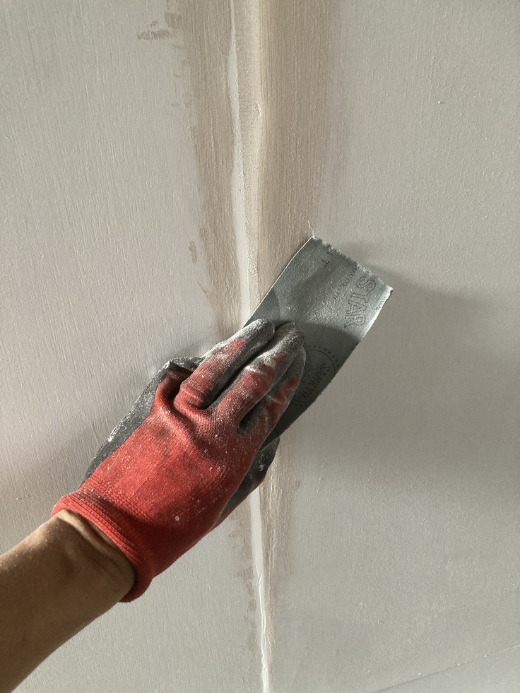 今日は、先日壁の大まかな塗装が終わり、じっと壁をみているとだんだん段差が気になり初め、ヤスリを使い、フラットにする作業をしています。木材の香りが良く、無心になれておすすめ!粉まみれになるけど。