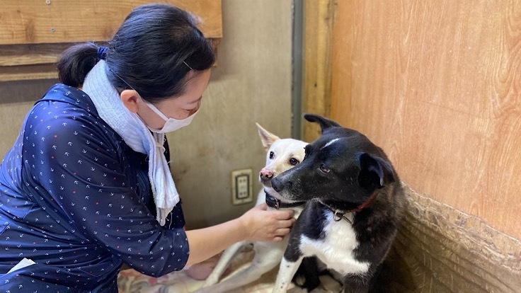 お世話するだけ、里親希望があれば譲渡するだけではなく、忙しい中でも声かけ、ふれあいをして人に懐いていない犬猫の心を癒す。頭数の多い中、1匹1匹の性格などを見て向き合っています。