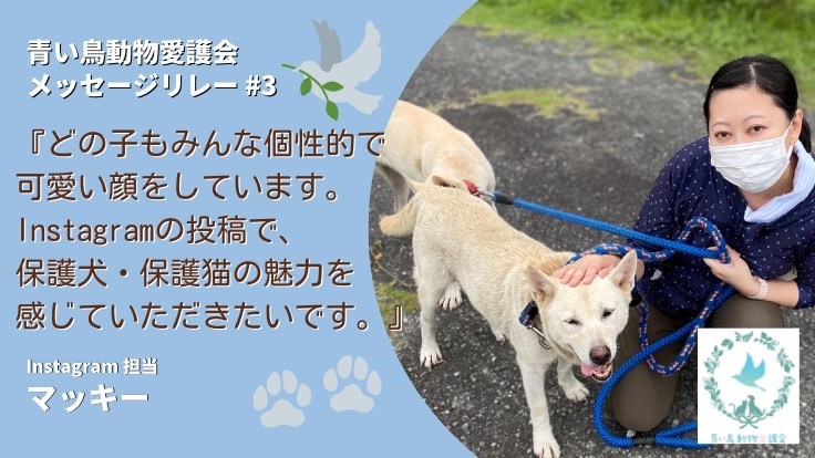 第3回目は、青い鳥動物愛護会 Instagram担当のマッキーさんです。
