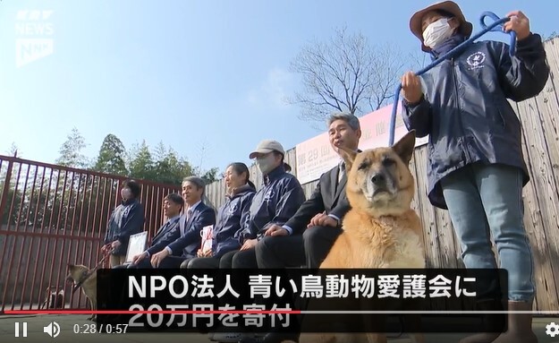 青い鳥和字のドッグシェルターで贈呈式が行われました。